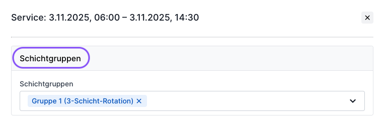 Wenn Sie dann in eine konkrete Schicht klicken, können Sie in den Details die Information zur Schichtgruppe finden und diese auch individuell entfernen oder neu hinzufügen.
