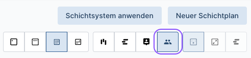 Das zugewiesene Schichtsystem von Mitarbeiter:innen ist ebenfalls im Schichtplan ersichtlich. Um sich diese anzeigen zu lassen, wählen Sie oben rechts in der Menüleiste unter Ansichten die Mitarbeiteransicht aus.